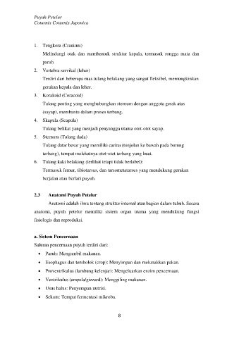 anatomi, puyuh petelur memiliki sistem organ utama yang mendukung fungsi