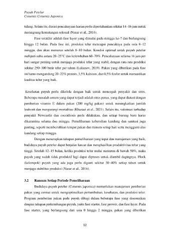 dengan tahapan perkembangan puyuh, yaitu fase starter, fase grower, dan fase layer. Pada