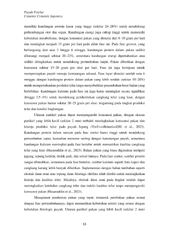 mempersiapkan puyuh menuju kematangan seksual. Fase layer dimulai setelah usia 6
