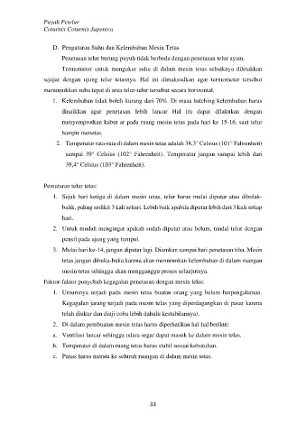 c. Panas harus merata ke seluruh ruangan di dalam mesin tetas.