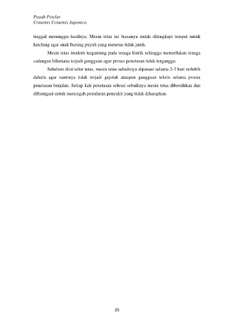 penetasan berjalan. Setiap kali penetasan selesai sebaiknya mesin tetas dibersihkan dan