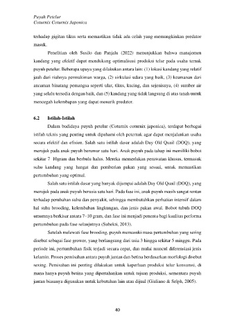 Dalam budidaya puyuh petelur (Coturnix coturnix japonica), terdapat berbagai