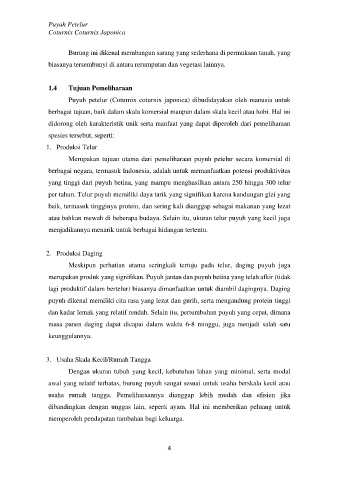 dan kadar lemak yang relatif rendah. Selain itu, pertumbuhan puyuh yang cepat, dimana