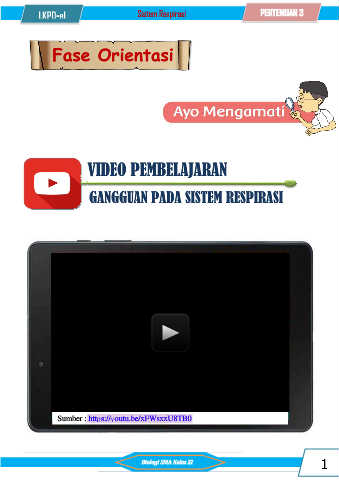 LKPD-el Sistem Respirasi PERTEMUAN 3 Fase Orientasi VIDEO PEMBELAJARAN GANGGUAN PADA SISTEM RESPIRASI Sumber : https://youtu.be/xFWsxxU8TB0 Biologi SMA Kelas XI