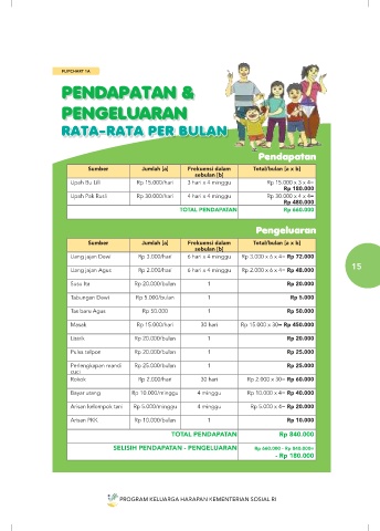 Masak Rp 15.000/hari 30 hari Rp 15.000 x 30= rp 450.000