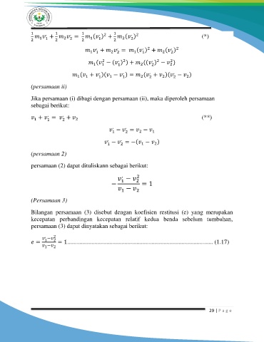 Bilangan persamaan (3) disebut dengan koefisien restitusi (e) yang merupakan