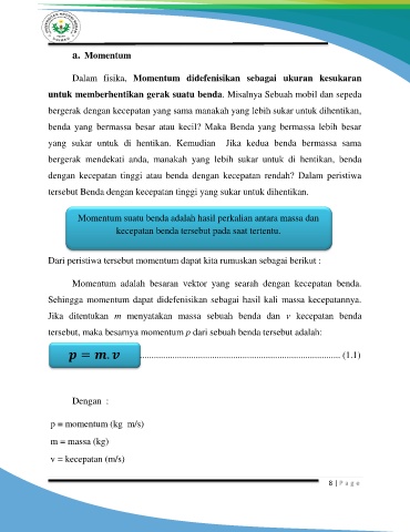 Momentum suatu benda adalah hasil perkalian antara massa dan