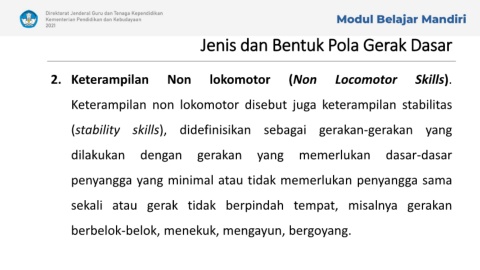 Keterampilan non lokomotor disebut juga keterampilan stabilitas