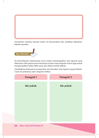 Sampaikan hasilnya kepada teman di kelompokmu dan serahkan tulisanmu