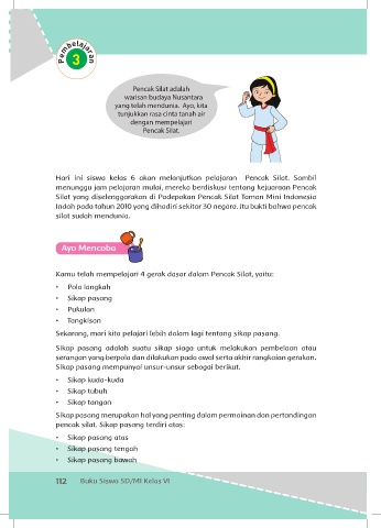 Hari ini siswa kelas 6 akan melanjutkan pelajaran Pencak Silat. Sambil