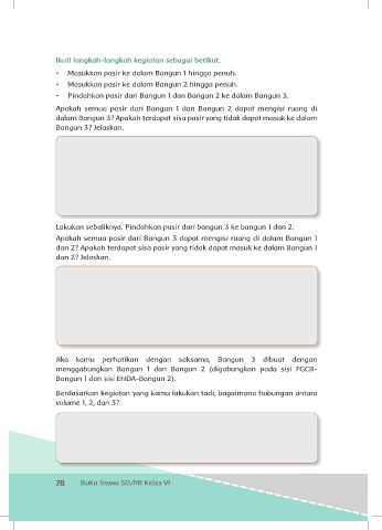 • Pindahkan pasir dari Bangun 1 dan Bangun 2 ke dalam Bangun 3.
