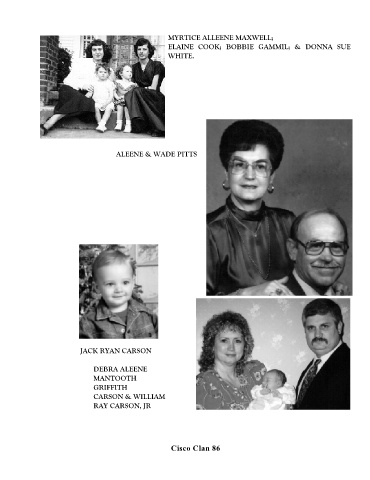 MYRTICE ALLEENE MAXWELL; ELAINE COOK; BOBBIE GAMMIL; & DONNA SUE WHITE. ALEENE & WADE PITTS JACK RYAN CARSON DEBRA ALEENE MANTOOTH GRIFFITH CARSON & WILLIAM RAY CARSON, JR Cisco Clan 86