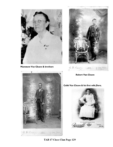 Mammow Van Cleave & brothers Robert Van Cleave Cobb Van Cleave & his first wife,Dora. TAB 17 Cisco Clan Page 129