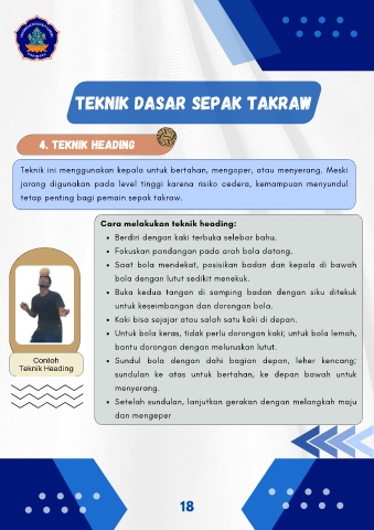 Teknik ini menggunakan kepala untuk bertahan, mengoper, atau menyerang. Meski