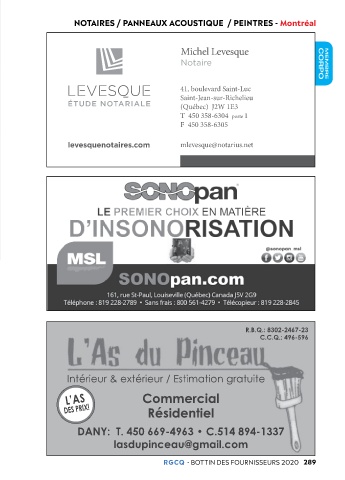 288 RGCQ - BOTTIN DES FOURNISSEURS 2020 RGCQ - BOTTIN DES FOURNISSEURS 2020 289