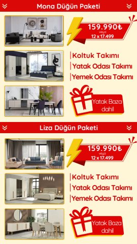 Mona D%u00fc%u011f%u00fcn Paket L za D%u00fc%u011f%u00fcn Paket Yatak Odas%u0131 Tak%u0131m%u0131Koltuk Tak%u0131m%u0131YemekOdas%u0131Tak%u0131m%u0131159.990%u20baYatakBazadah l12 x 17.499veyaYatak Odas%u0131 Tak%u0131m%u0131Koltuk Tak%u0131m%u0131YemekOdas%u0131Tak%u0131m%u0131159.990%u20baYatakBazadah l12 x 17.499veya