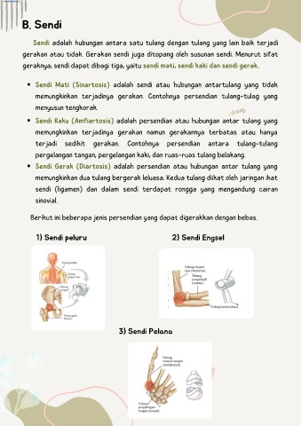 geraknya, sendi dapat dibagi tiga, yaitu sendi mati, sendi kaki dan sendi gerak.