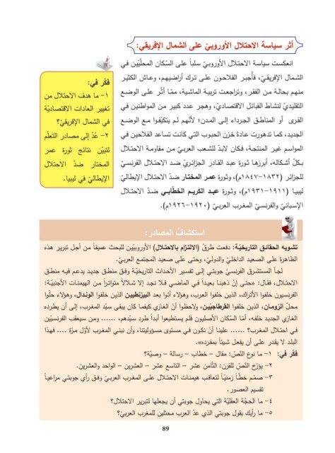 ف ّكر في: أثر سياسة الاحتلال الأوروب ّي على الشمال الإفريقي: