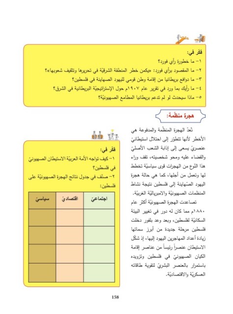 -2صّنف في جدول نتائج الهجرة الصهيونّية على والقضاء عليه ومحو شخصيته ،تقف و ارء