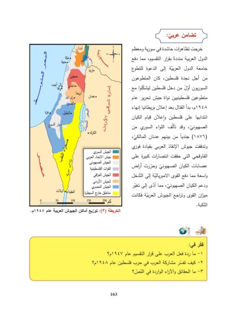 الخريطة ( :)3توزيع أماكن الجيوش العربية عام 1948م. تضامن عرب ّي:
