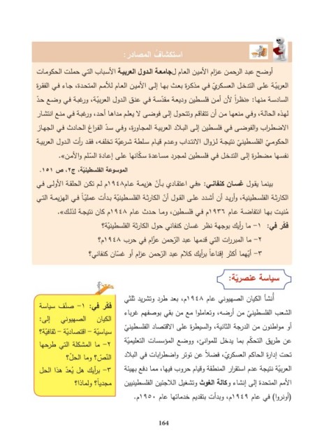 ف ّكر في -1 :ما أريك بوجهة نظر غسان كنفاني حول الكارثة الفلسطينّية؟