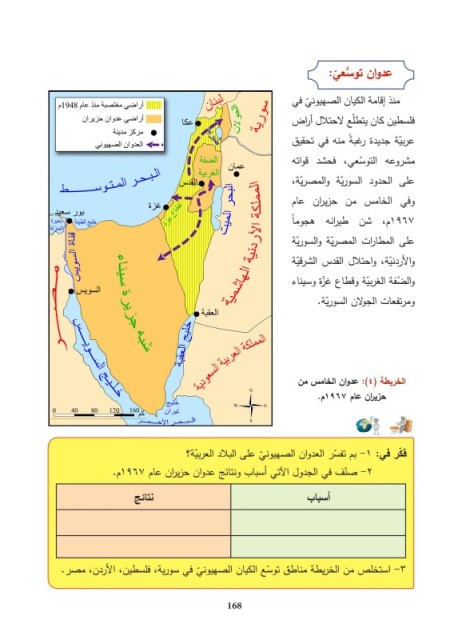 -3استخلص من الخريطة مناطق تو ّسع الكيان الصهيون ّي في سورية ،فلسطين ،الأردن ،مصر.