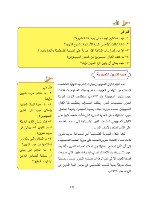 تستنتجها من حرب تشرين؟ حرب تشرين فقد ازد الاهتمام الدول ّي بقضّية فلسطين ،التي أصبحت