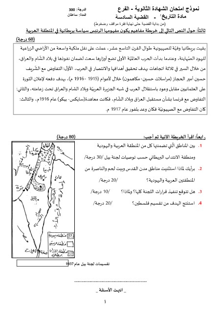 ومنطقة الانتداب البريطاني حسب توصيات لجنة بيل 30/درجة/