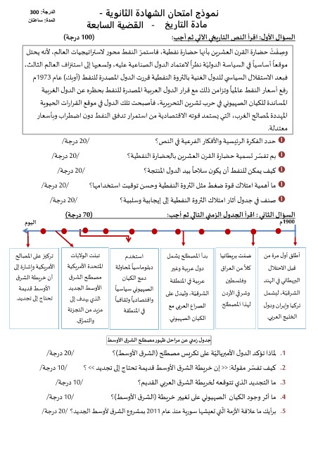 الدرجة300 : نموذج امتحان الشهادة الثانوية -