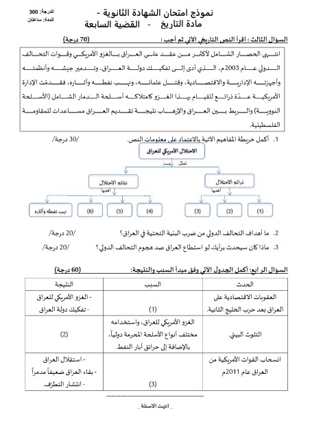 الدرجة300 : نموذج امتحان الشهادة الثانوية -