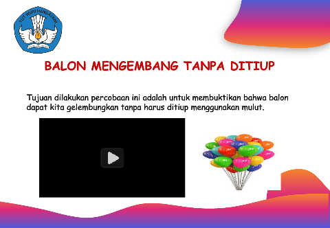 BALON MENGEMBANG TANPA DITIUP Tujuan dilakukan percobaan ini adalah untuk membuktikan bahwa balon dapat kita gelembungkan tanpa harus ditiup menggunakan mulut.