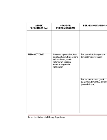 ASPEK STANDAR PERKEMBANGAN DASAR INDIKATOR