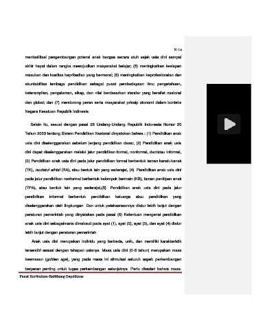 Tahun 2003 tentang Sistem Pendidikan Nasional dinyatakan bahwa : (1) Pendidikan anak