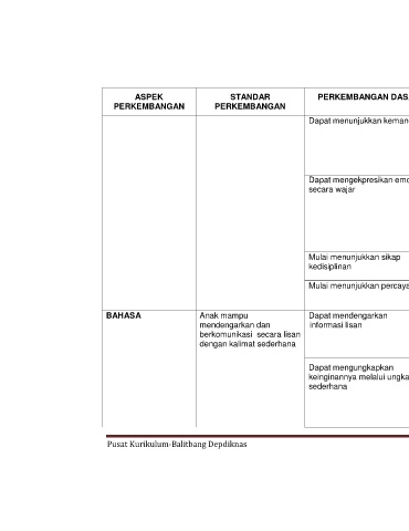 ASPEK STANDAR PERKEMBANGAN DASAR INDIKATOR
