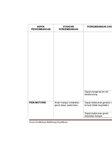ASPEK STANDAR PERKEMBANGAN DASAR INDIKATOR