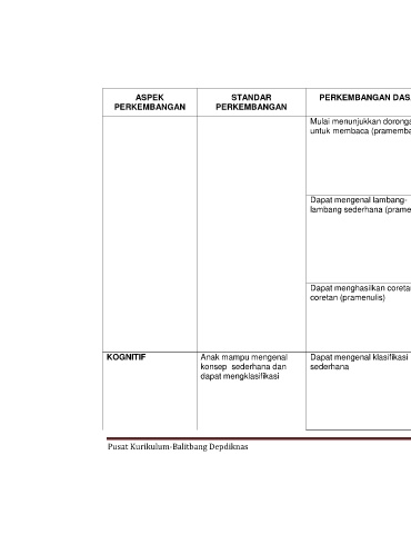 ASPEK STANDAR PERKEMBANGAN DASAR INDIKATOR