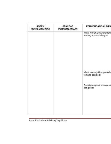 ASPEK STANDAR PERKEMBANGAN DASAR INDIKATOR