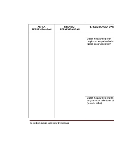 ASPEK STANDAR PERKEMBANGAN DASAR INDIKATOR