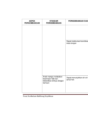 ASPEK STANDAR PERKEMBANGAN DASAR INDIKATOR