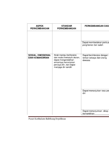 ASPEK STANDAR PERKEMBANGAN DASAR INDIKATOR