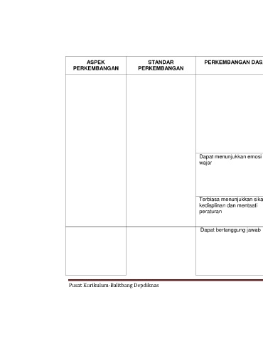 ASPEK STANDAR PERKEMBANGAN DASAR INDIKATOR