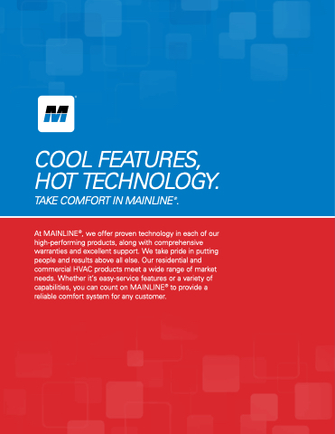 At MAINLINE®, we offer proven technology in each of our high-performing products, along with comprehensive warranties and excellent support. We take pride in putting people and results above all else. Our residential and commercial HVAC products meet a wide range of market needs. Whether it’s easy-service features or a variety of capabilities, you can count on MAINLINE® to provide a reliable comfort system for any customer.