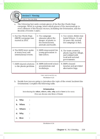 a. The following fact cards contain pieces of the Bye Bye Plastic Bags