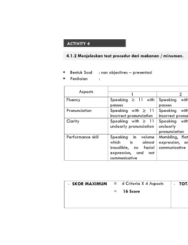 - SKOR MAXIMUM = 4 Criteria X 4 Aspects - TOTAL NILAI SISWA = Jumlah score yang diperoleh siswa