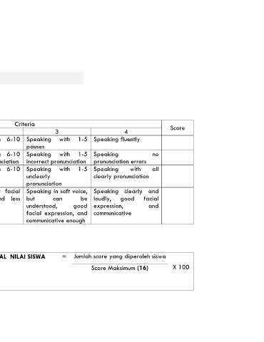 - SKOR MAXIMUM = 4 Criteria X 4 Aspects - TOTAL NILAI SISWA = Jumlah score yang diperoleh siswa