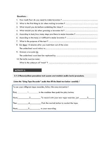 3.1.2 Menunjukkan procedure text secara urut melalui audio berisi procedure.