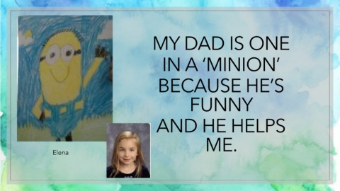 MY DAD IS ONE IN A ‘MINION’ BECAUSE HE’S FUNNY AND HE HELPS ME. Elena