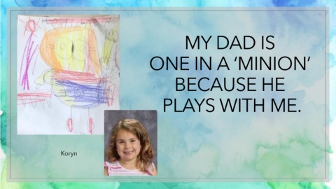 MY DAD IS ONE IN A ‘MINION’ BECAUSE HE PLAYS WITH ME. Koryn