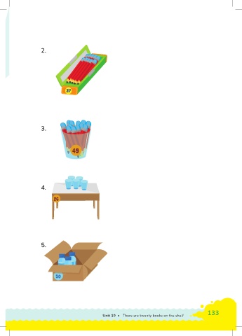 2. = __________________________________ 37 55 3. = __________________________________ 49 4. = __________________________________ 26 26 5. = __________________________________ 50 50 132 Unit 10 • There are twenty books on the shelf 133