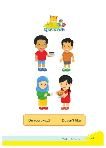 w w w w w ords ords w ords My new words My My My ne ne ne Do you like...? Doesn’t like 21 Unit 2 • I don’t like rice